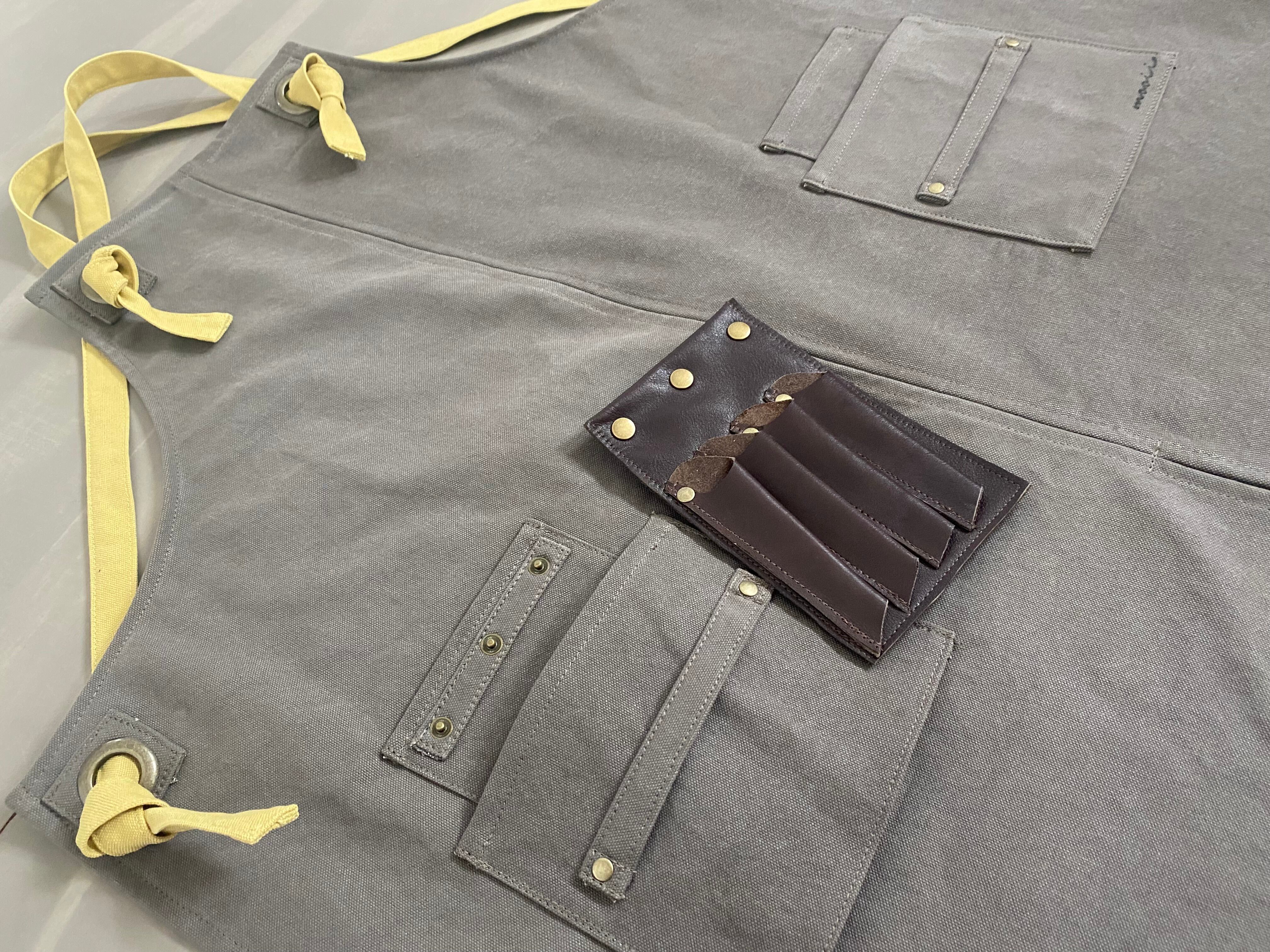 右手側にシザーケース付きのデザインになります。(シザー4丁分収納可能)