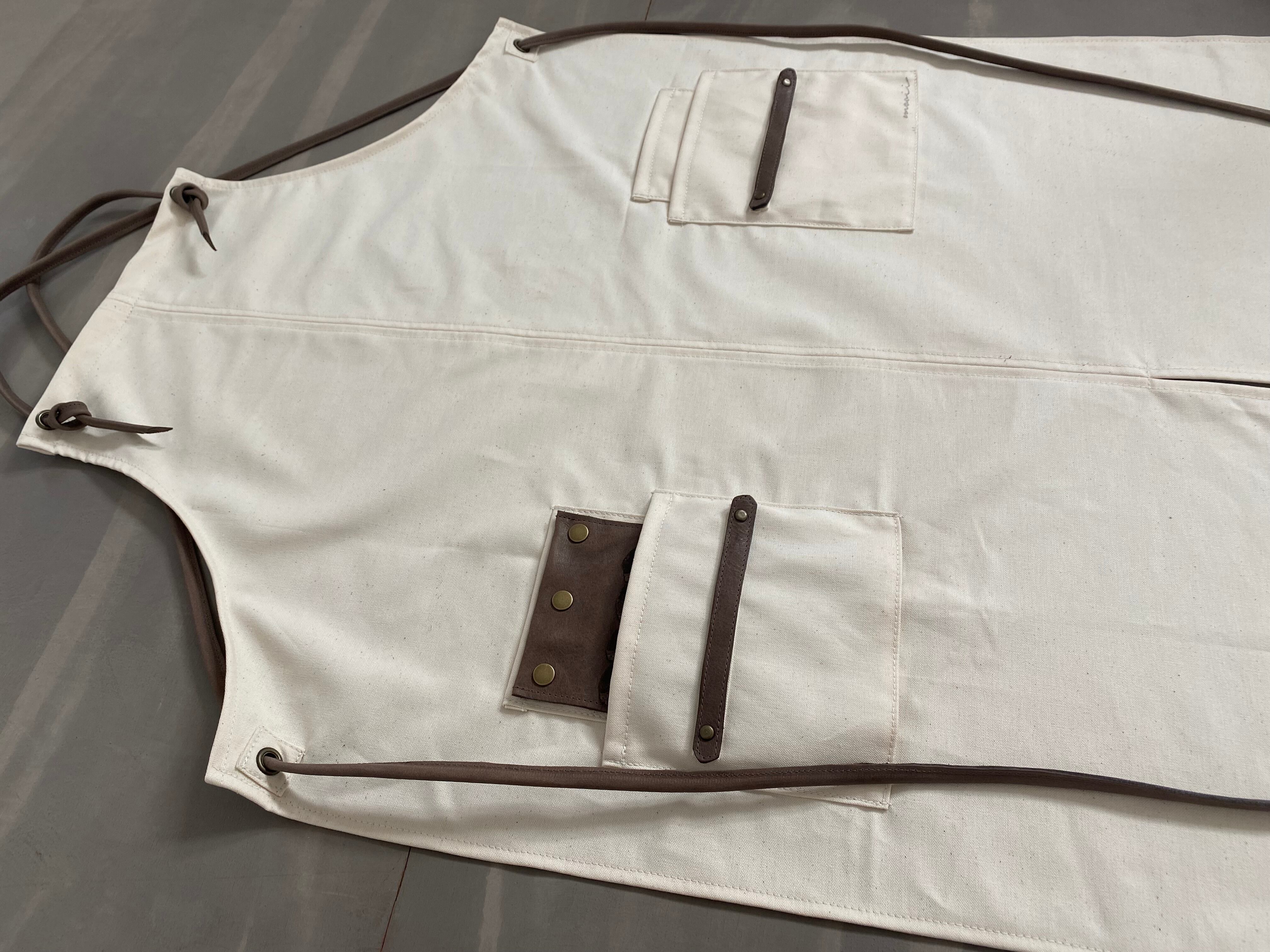 薄手の11号帆布を使用し帆布の丈夫さはありますが、軽い質感なので負担が少なく着用しやすいです。