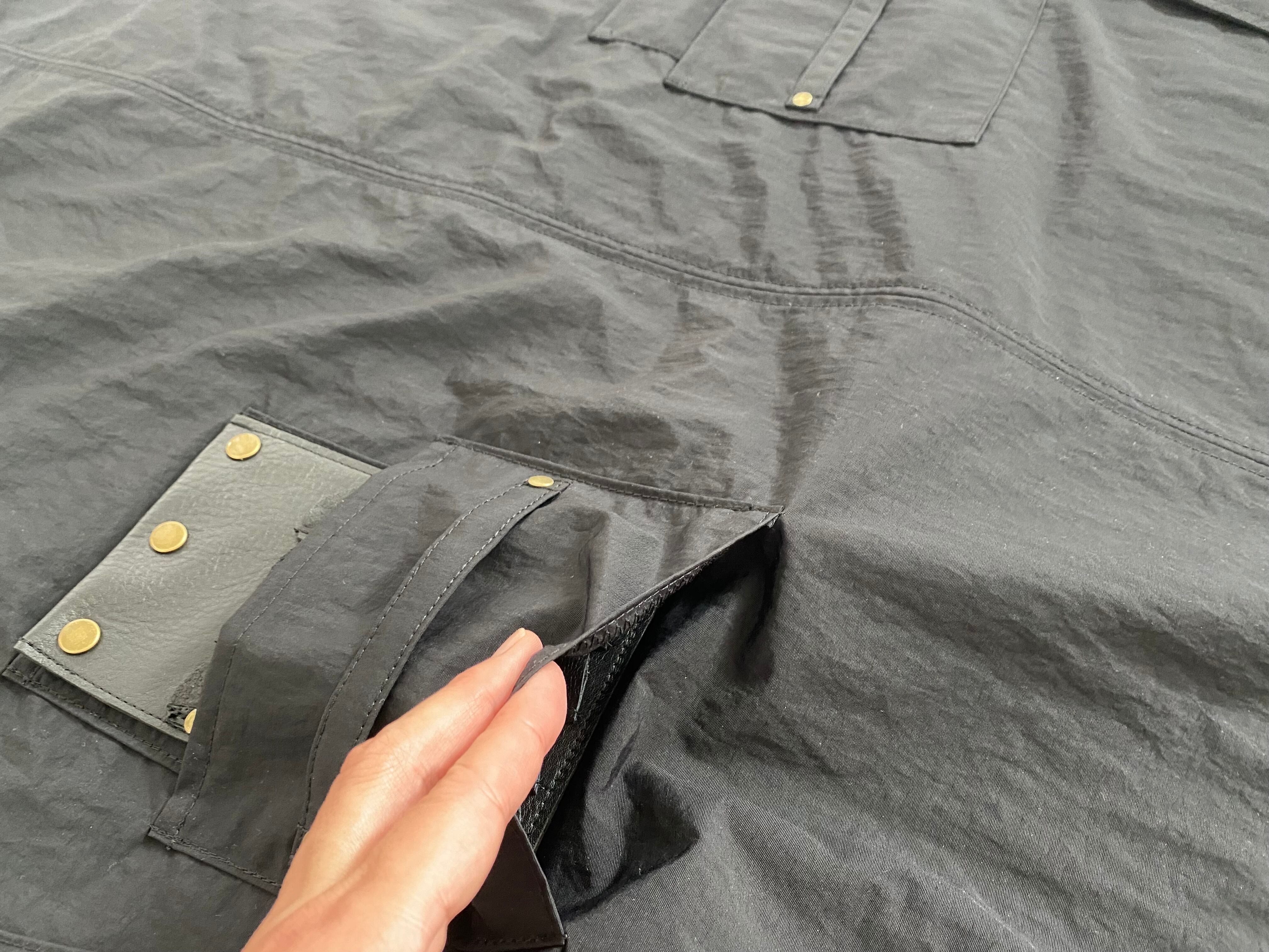 髪の毛が付きにくく、払いやすい素材感です。撥水ナイロンですので水にも強くオススメです。